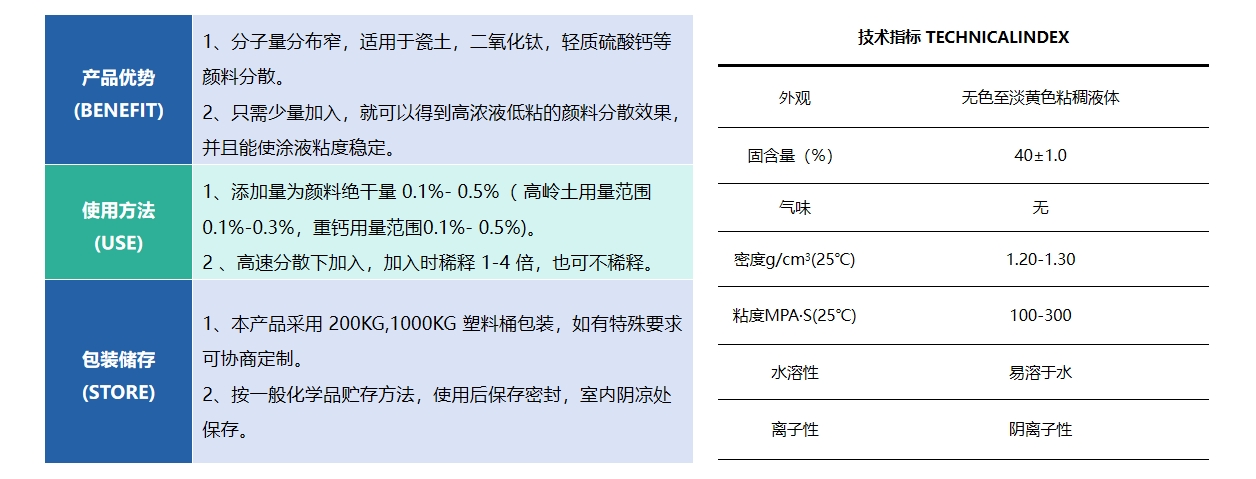 HQ-S933M 分散劑,是聚胺酸系列涂料分散劑,極易溶于水,對無機(jī)頻料 有很好的分散劑和降粘效果。使涂布漿料有極具流動(dòng)性。